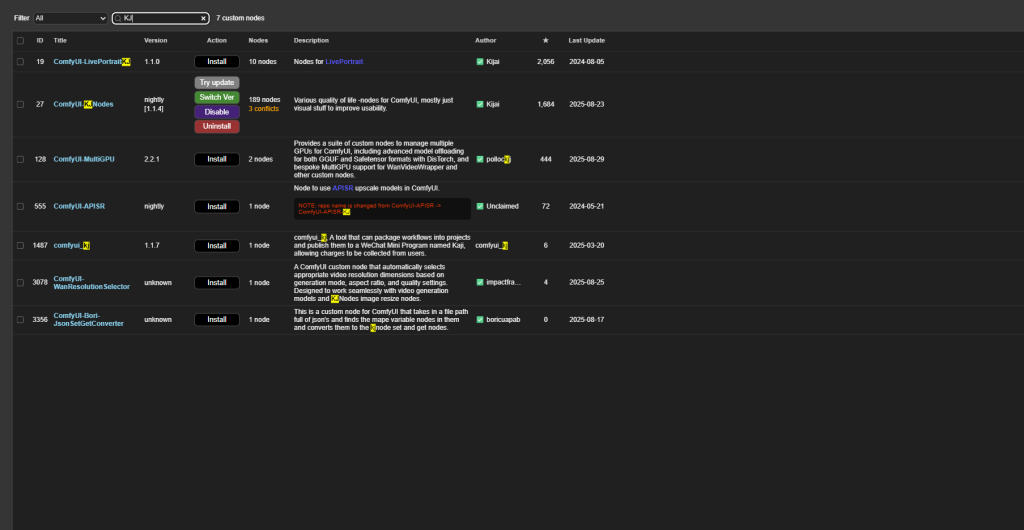 ComfyUI에서 missing nodes로 잡힌 것을 설치하고