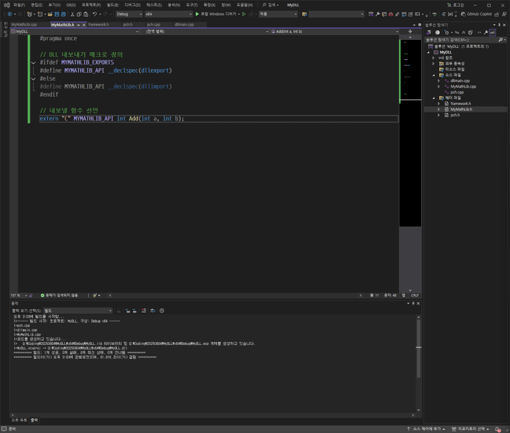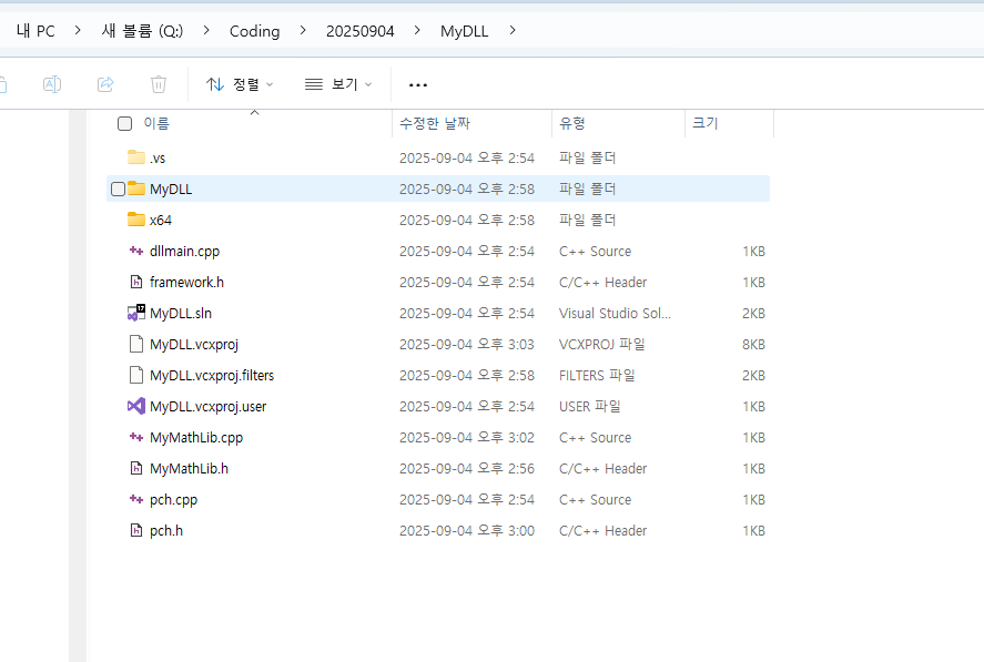 x64 > Debug > MyDLL.dll 이 보일 것이다.