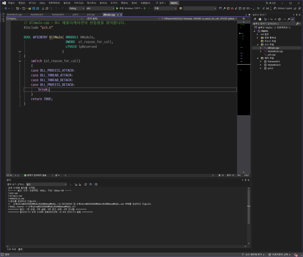 DllMain의 진입점을 정의하는 파일이 생성되어 있음을 알 수 있다.