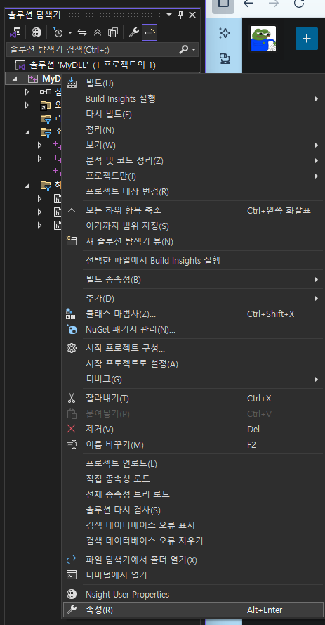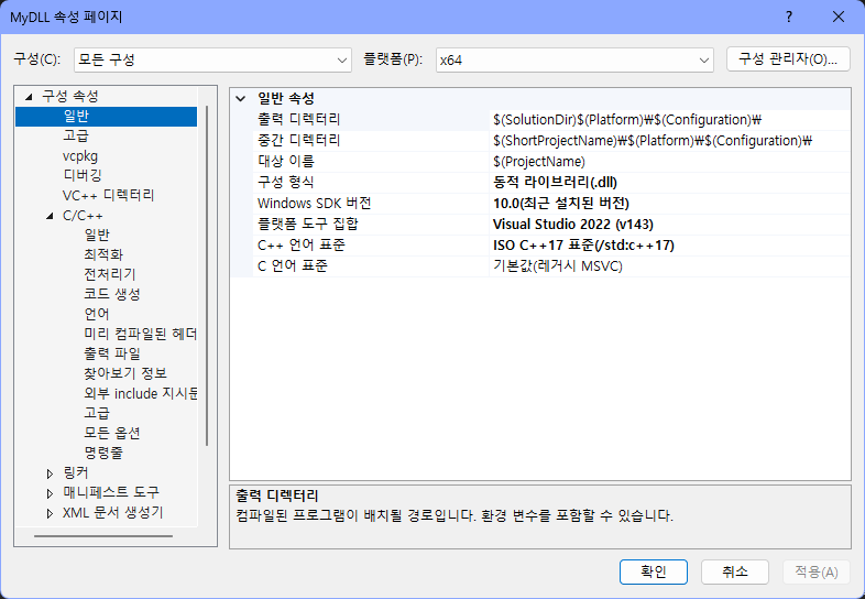 새 프로젝트 만들기 > DLL(동적 연결 라이브러리)