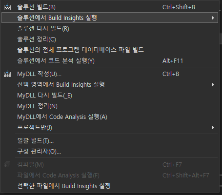 이제 이 상태로 빌드 > 솔루션 빌드(B)를 눌러 빌드를 시작하자.