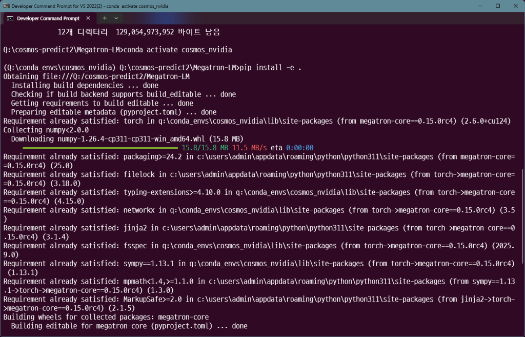 cosmos-predict2의 megatron-core를 주석처리한다.