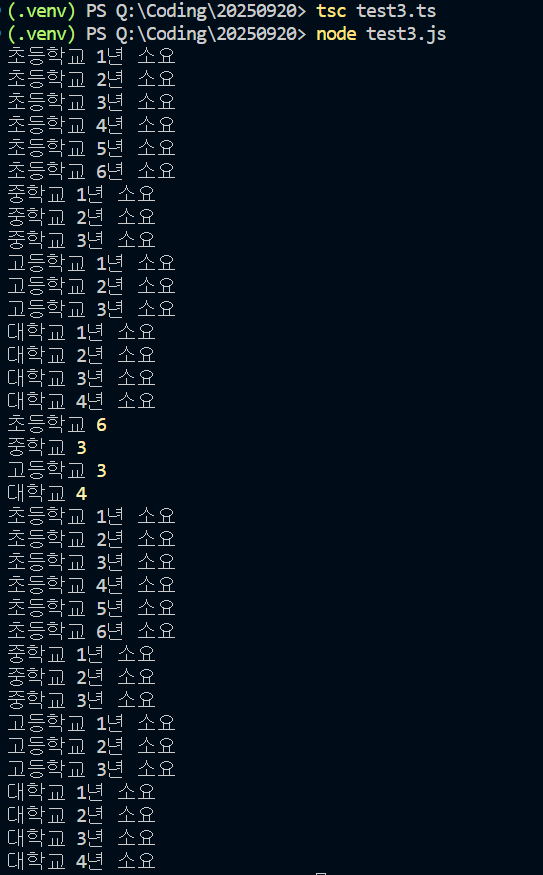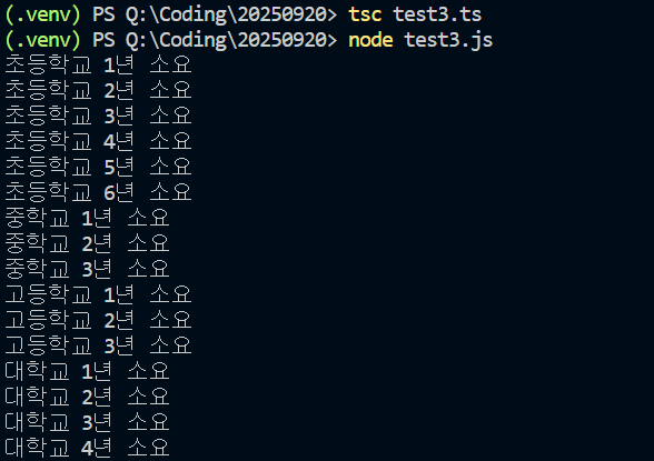 for (const [단계, 년수] of Object.entries(공교육)) {
