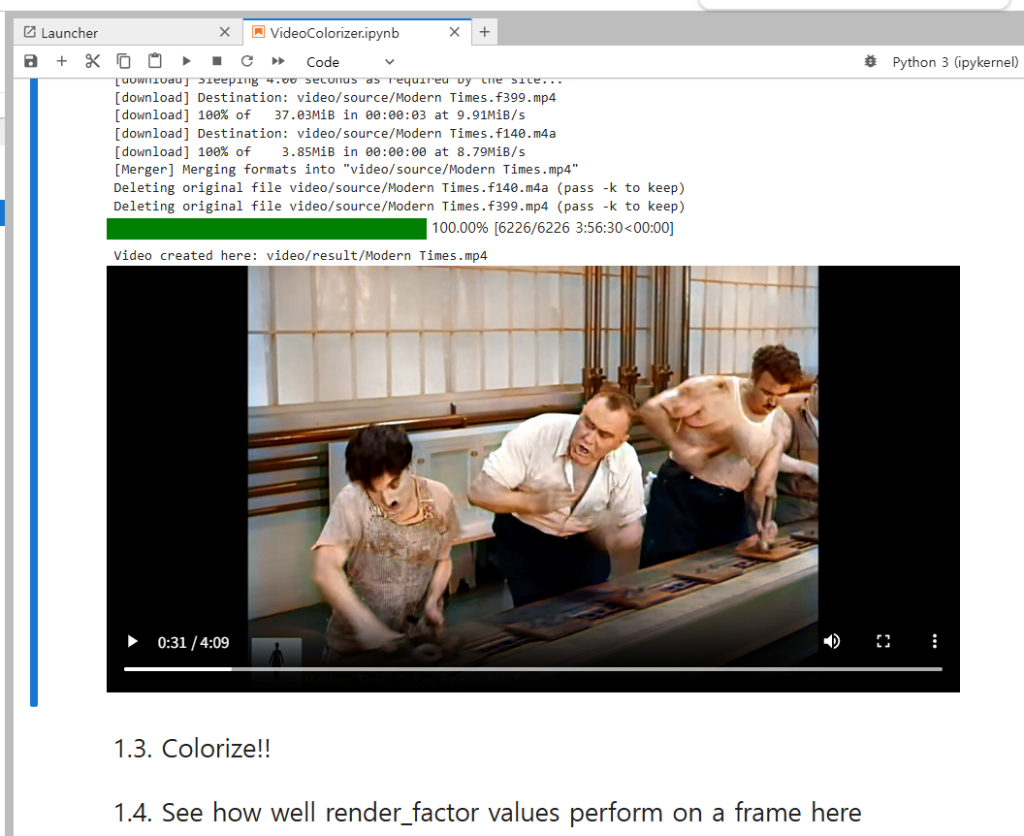 다음 영상이 아래와 같이 채색되는 모습을 볼 수 있다.