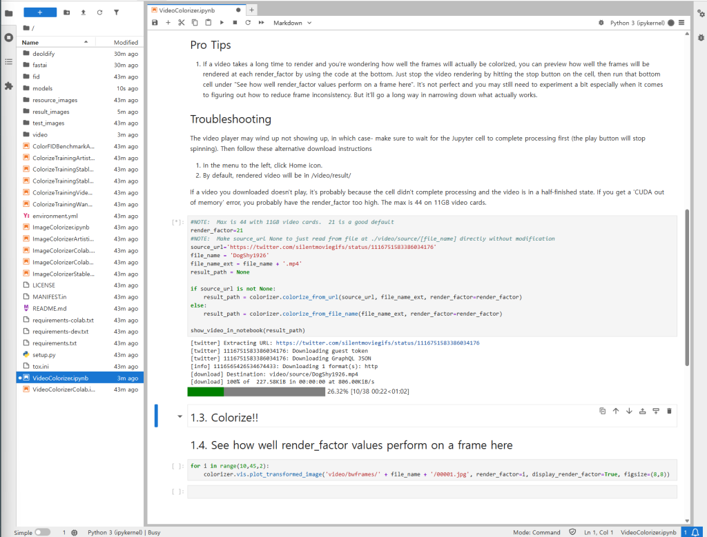 git clone https://github.com/jantic/DeOldify.git DeOldify
