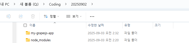 현재 디렉터리에 my-grapejs-app이라는 서브디렉터리가 하나 생기게 된다.