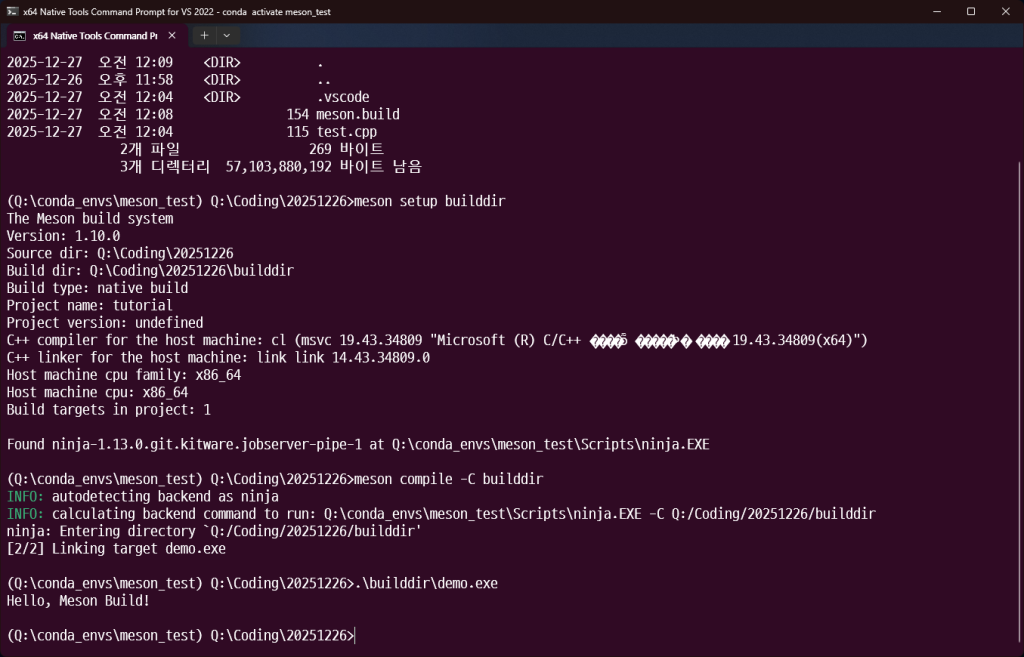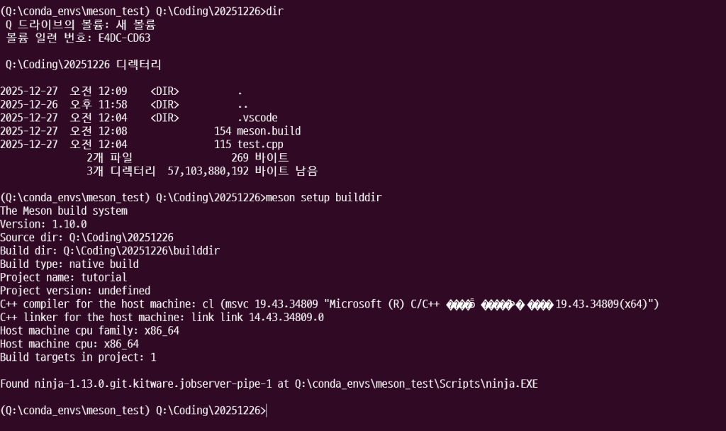 meson 빌드는 항상 설정(setup) 과 컴파일(compile) 두 단계로 나뉜다.